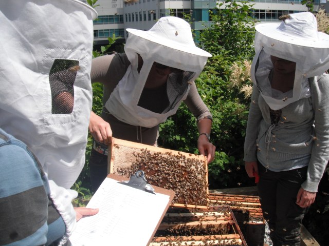 Aspiring beekeepers get acquainted at East Vancouver’s Means of Production garden. Photo by Sheilagh McKenna.