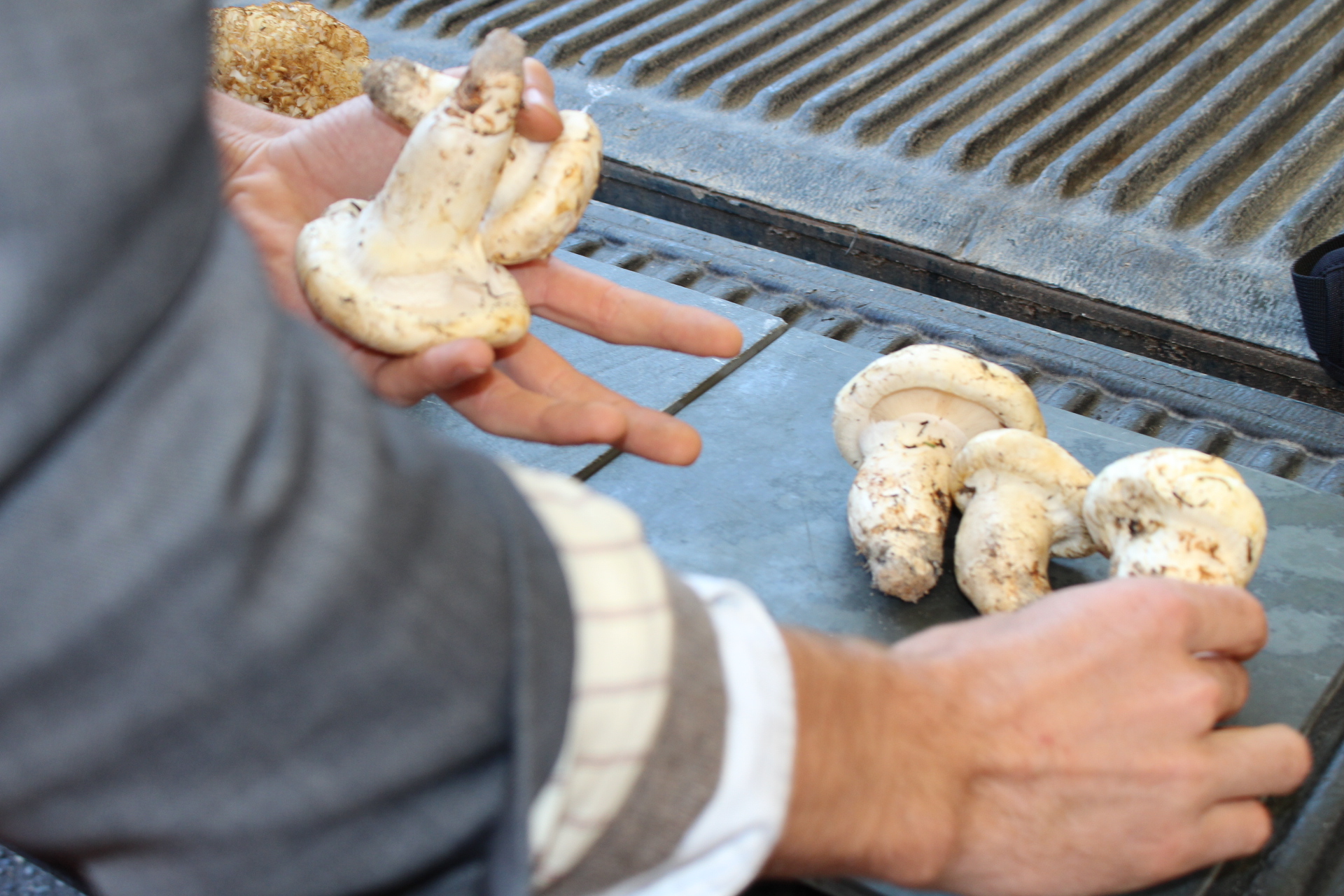 Forager Alexander McNaughton picks up to 100 pounds of mushrooms a week, like the pine mushrooms seen here.